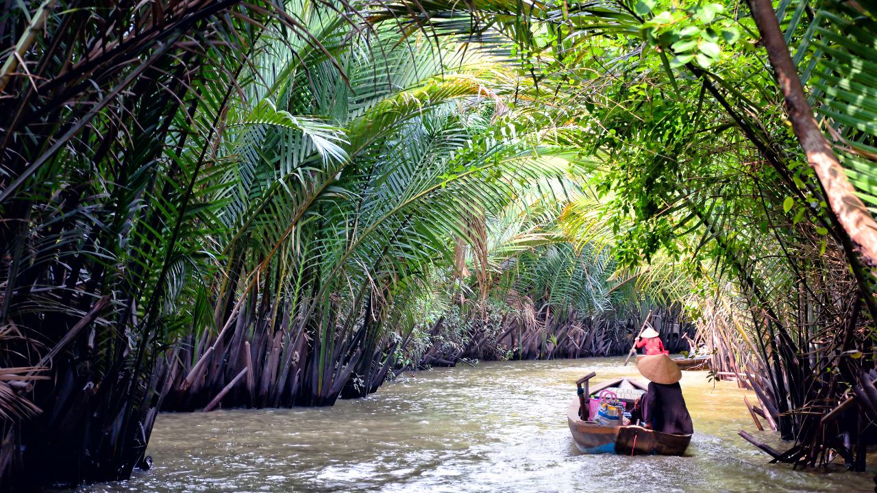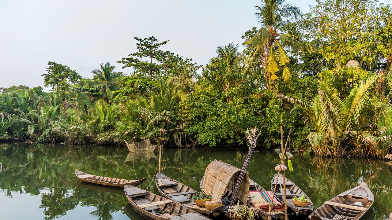 メコンデルタはベトナム南部に広がる広大な三角州地帯で、無数の川と運河に支えられた水の世界です。中心都市のカントーをはじめ、ココナッツ産地として知られるベンチェなどが点在し、米、果物、魚介の一大生産地としてベトナムの食を根底から支えています。人々の暮らしは水上交通と密接に結びつき、舟での移動や水上マーケットが今も日常の一部です。大都市とは異なる、ゆったりとした時間の流れと素朴な生活文化を体感できる地域です。