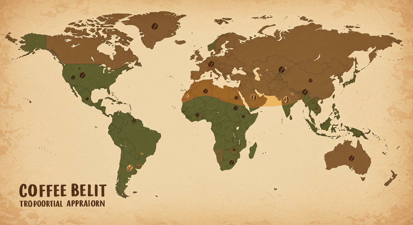 コーヒーの栽培地域は赤道周辺の「コーヒーベルト」と呼ばれる帯状の地帯に集中しています。