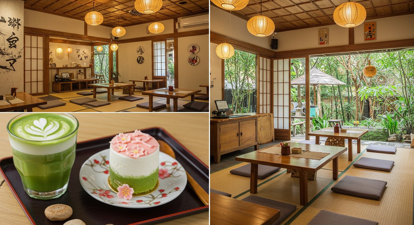抹茶カフェラテや桜ロールケーキなど、日本をイメージしたメニューが人気。特にケーキは見た目以上に本格的で、甘さ控えめな味わいが日本人の口にも合います。