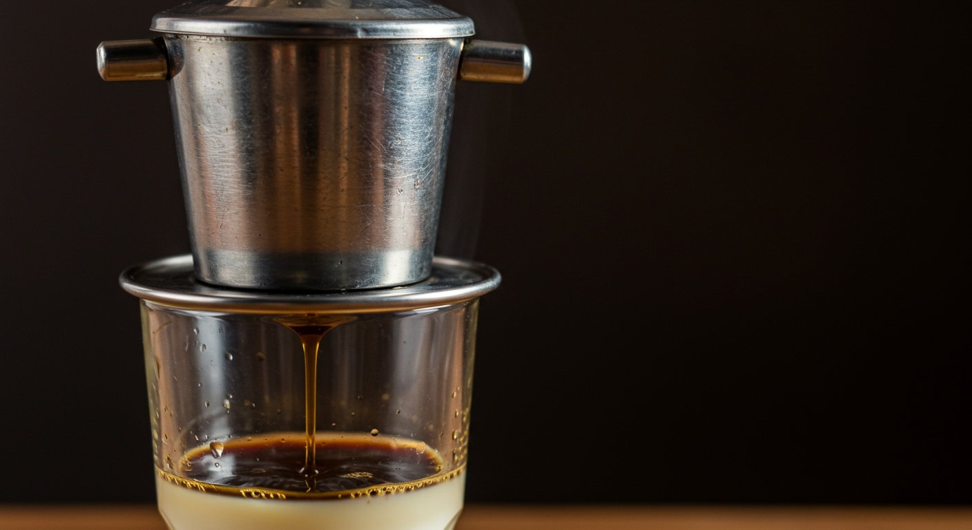 ベトナムのカフェでは、コーヒーが淹れられるのを待つ時間も楽しみの一つ。フィンからゆっくりと滴り落ちるコーヒーを眺めながら、周囲の雰囲気を味わいましょう。