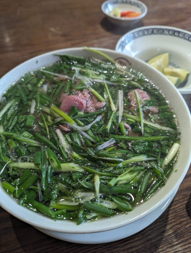 牛肉の旨みがきいたスープは余計なものが一切なく、牛肉の量は驚くほどたっぷり。狭くて暑い店内もローカル感があってむしろ最高です。