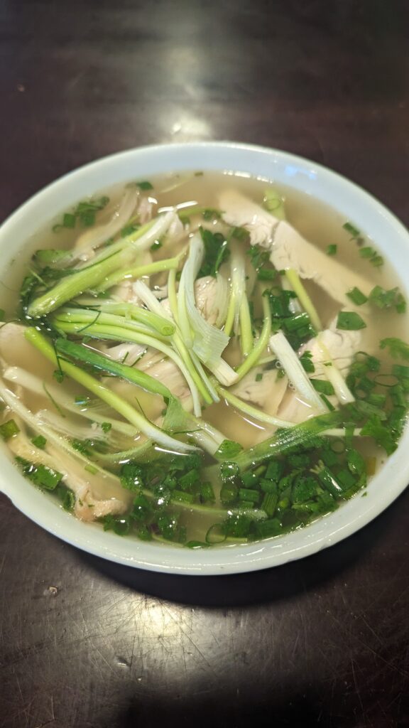 鶏肉がのったフォーは、「Pho Ga(フォーガー)」とよばれ、牛肉のフォーよりもあっさりとした味わいが特徴です。店によっては鶏肉の部位を選ぶことができます。