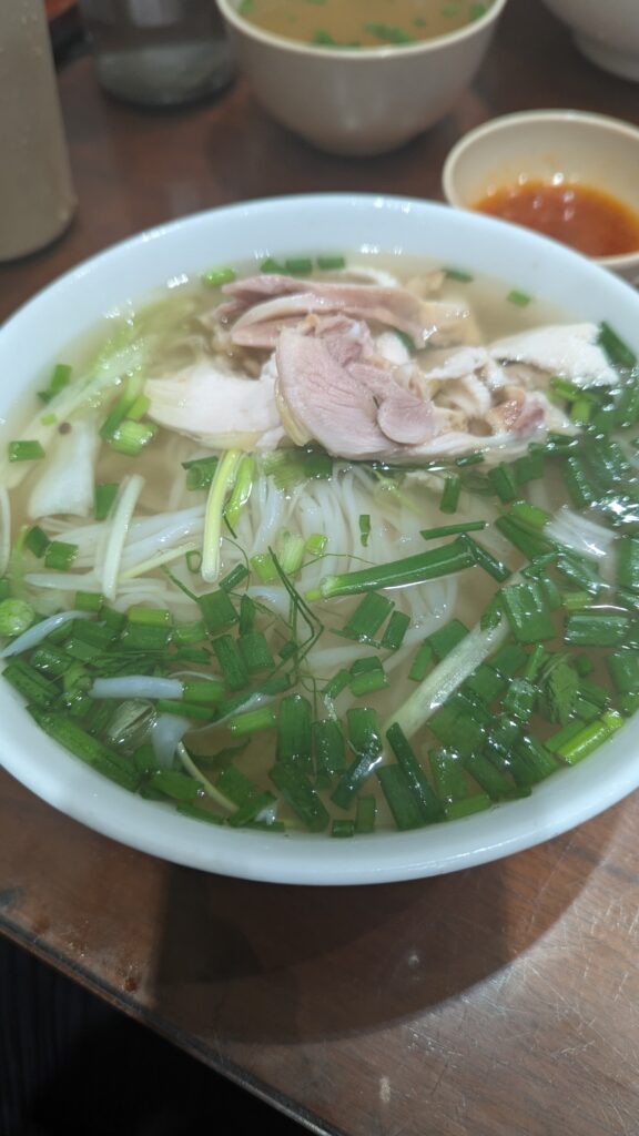 地元民だけでなく、在住日本人にも人気な鶏肉のフォーのお店です。鶏肉の部位を選べ、席について紙に書いてオーダーします。鶏肉が柔らかく、あっさりとしたスープと麺によく合います。